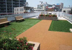 屋上やバルコニーなど、天然芝の生育が困難な箇所にも、芝感触の演出が可能です。